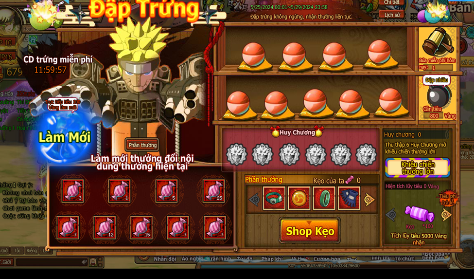 7. Trong quá trình đập trứng nhận Huy Chương , tập hợp đủ 6 Huy Chương mở kiêu chiến thưởng lớn , ở kiêu chiến thưởng lớn nhận lượng lớn kẹo
