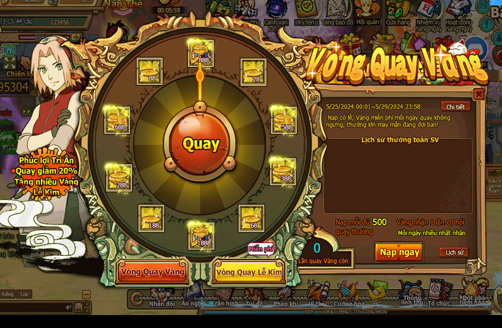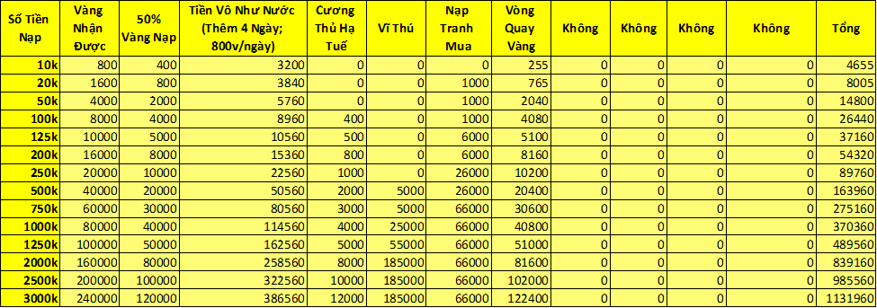 1. Trong thời gian event, người chơi nạp đủ 500 vàng nhận 1 lần cơ hội quay ( vòng quay vàng )