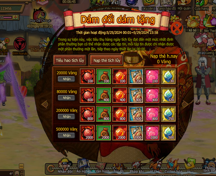 1. Trong thời gian event nạp Vàng đạt mốc chỉ định kích hoạt quyền mua đạo cụ giới hạn giảm giá: một số đạo cụ còn miễn phí nhận.