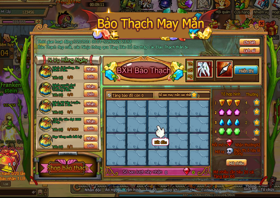 5. Ở Shop Bảo Thạch tiêu Sao May Mắn đổi các loại đạo cụ.