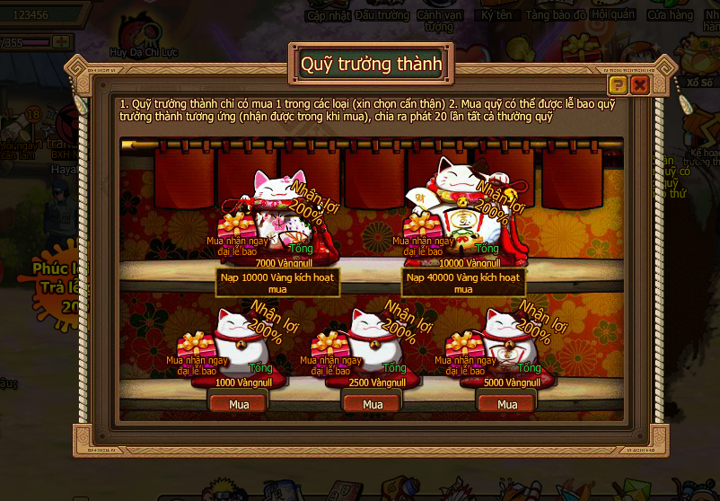 Mua lễ bao chỉ có thể tốn vàng , lễ bao có cấp mở hạn chế