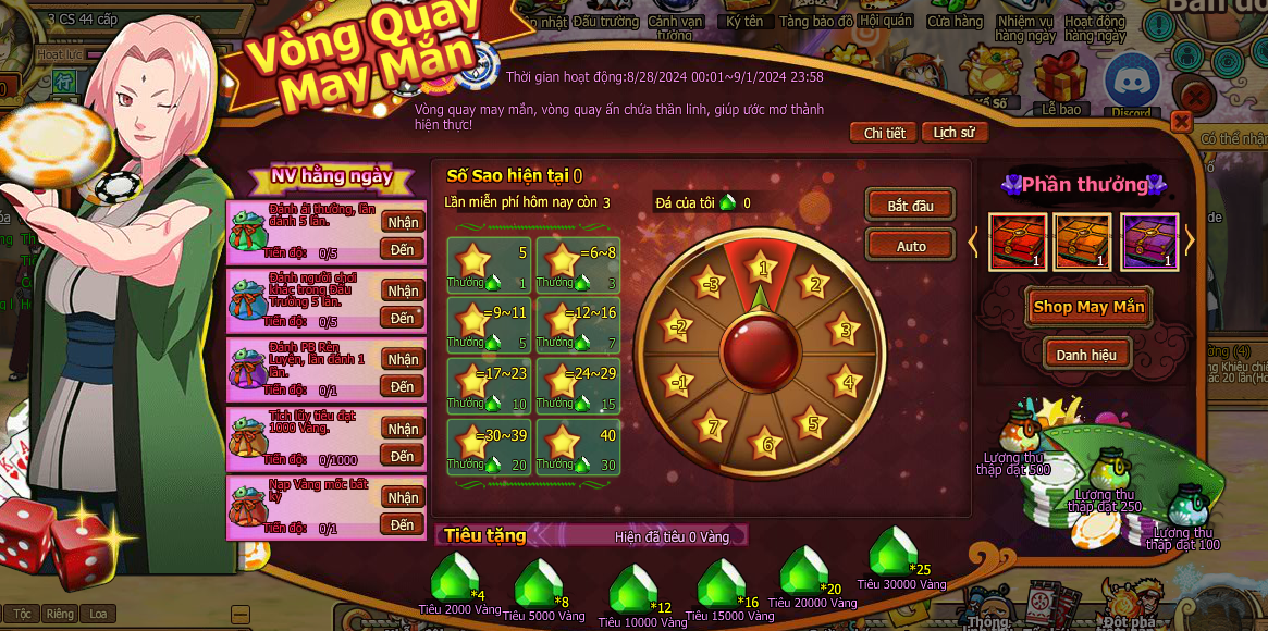 1.Trong thời gian hoạt động hoan thành nv hằng ngày nhận sao may mắn