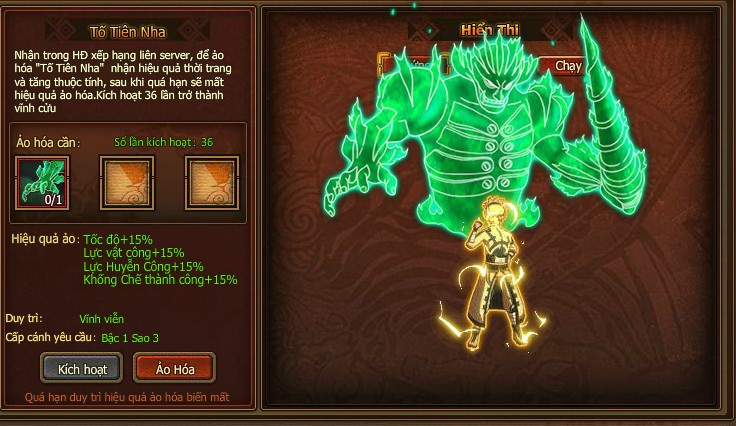 2. Nạp thẻ 1 lấn 200.000 Vàng có thể kích hoạt 3 con.
