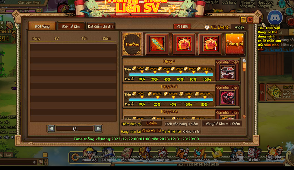 Vàng trả lễ không tham dự event khác và kinh nhiệm VIP