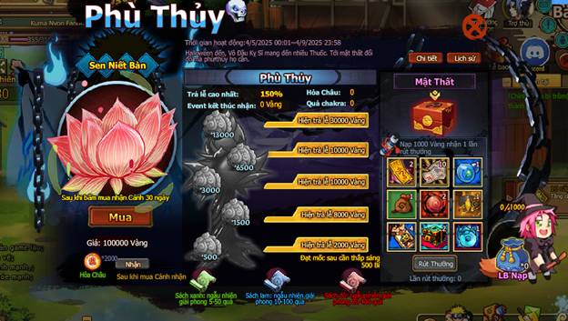 3. Mỗi nạp 1000 Vàng nhận 1 LB Nạp, lặp lại nhận.