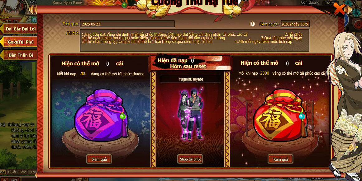 1. Nạp đơn đạt Vàng chỉ định nhận túi phúc thường, tích nạp Vàng chỉ định nhận túi phúc cao cấp.