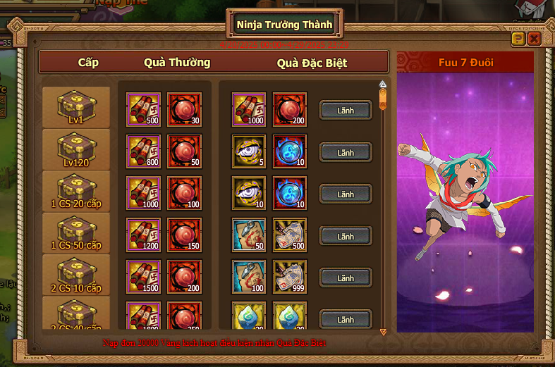 1. Tăng cấp ninja chỉ định để nhận thưởng