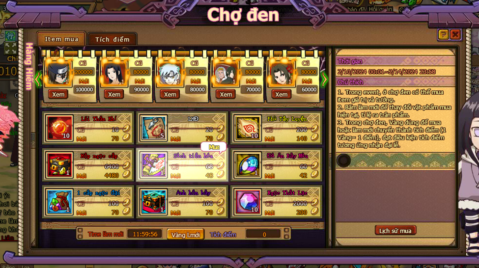 1. Trong event , ở chợ đen có thể mua item giá trị và tướng