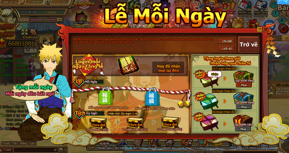 3. Người chơi trong thời gian event mỗi ngày đăng nhập game sẽ tự động tích lũy số ngày đăng nhập, tích lũy số ngày đăng nhập đạt mốc chỉ định nhận LB tích lũy đăng nhập.