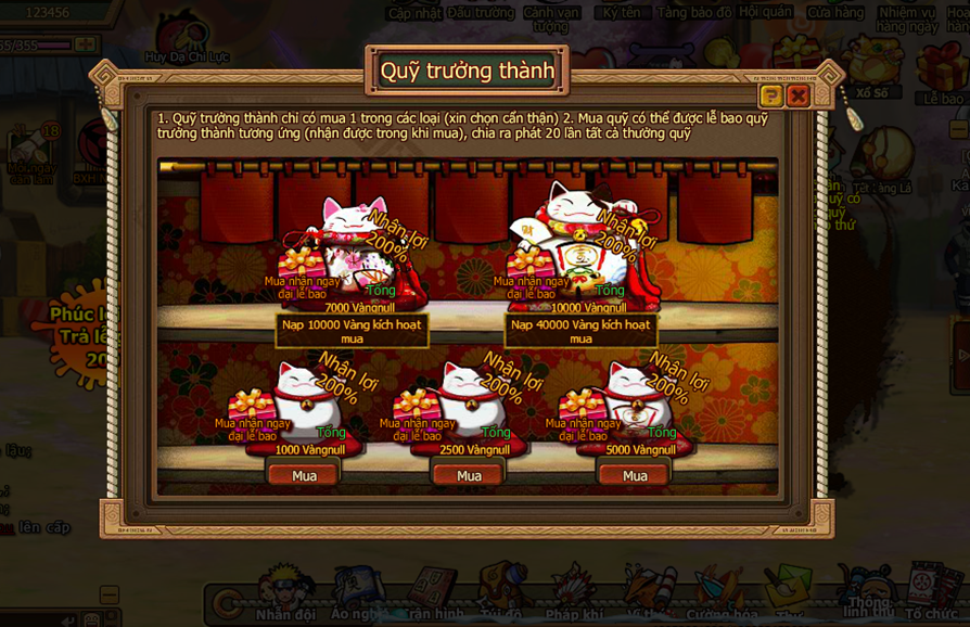 Lưu Ý : nạp 1 lần 200.000 vàng mới nhận cả 3 con mèo