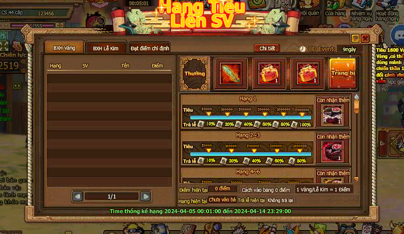 3. Trong thời gian event, người chơi tiêu đủ 1000 vàng nhận 1 lần cơ hội vòng quay lễ kim, mỗi ngày nhiều nhất có thể nhận 20 lần