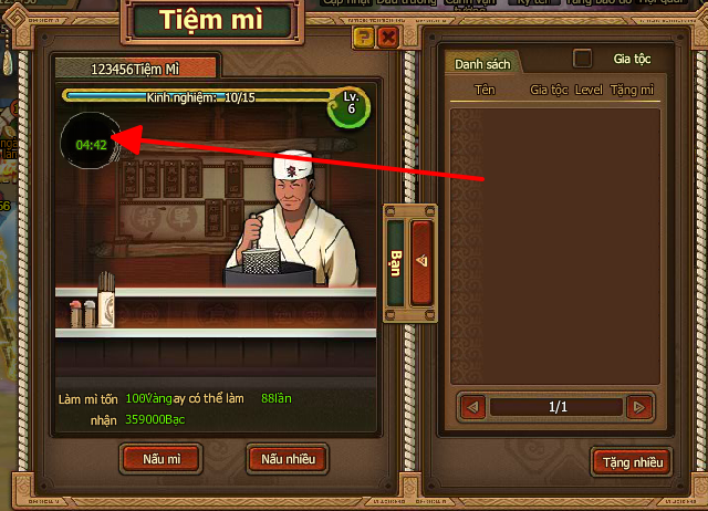 ( Hình Ảnh : Nút Tặng Nguyên Liệu Và Thanh Kinh Nghiệm Lên Cấp Của Tiệm Mì )