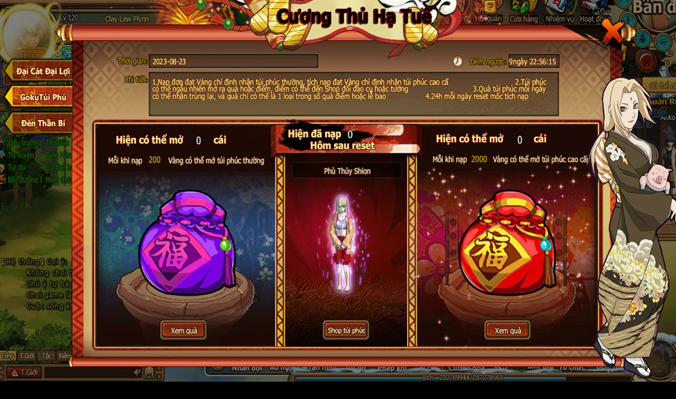2. Sau khi nạp đủ mốc tương ứng, nhận thưởng Tộc Otsutsuki, nếu chưa nhận thưởng, không thể tăng số lượng Huyết Kế.