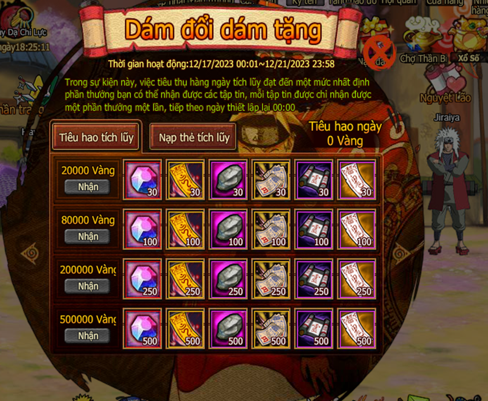 1. Trong thời gian event nạp Vàng đạt mốc chỉ định kích hoạt quyền mua đạo cụ giới hạn giảm giá: một số đạo cụ còn miễn phí nhận.