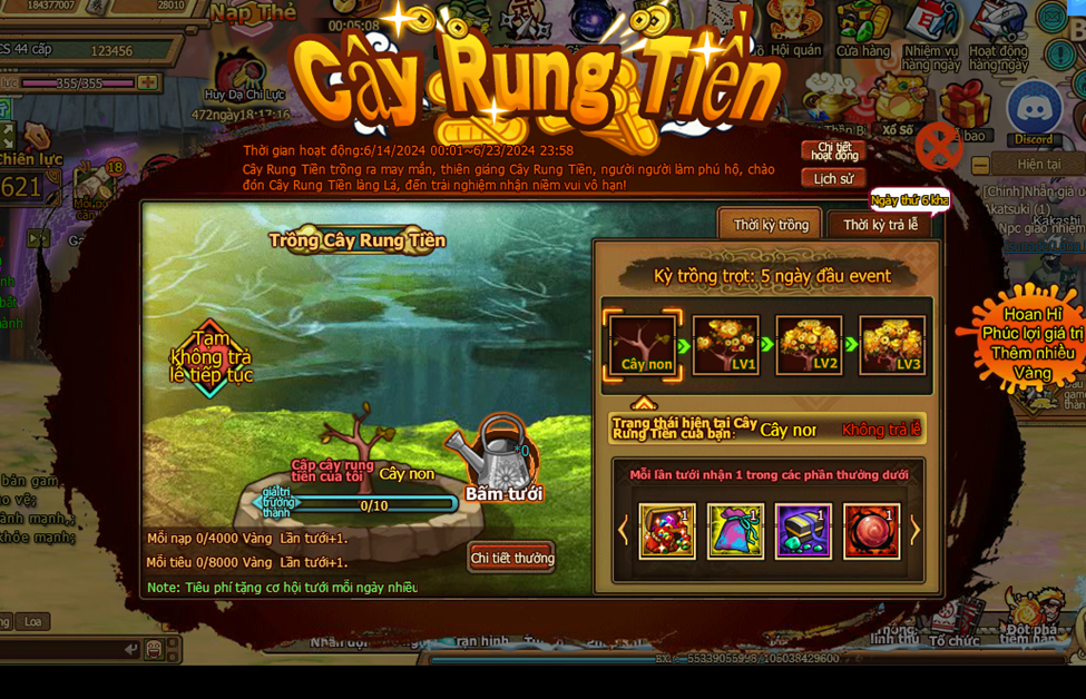 1. Trong thời gian event nạp Vàng đạt mốc chỉ định kích hoạt quyền mua đạo cụ giới hạn giảm giá: một số đạo cụ còn miễn phí nhận.