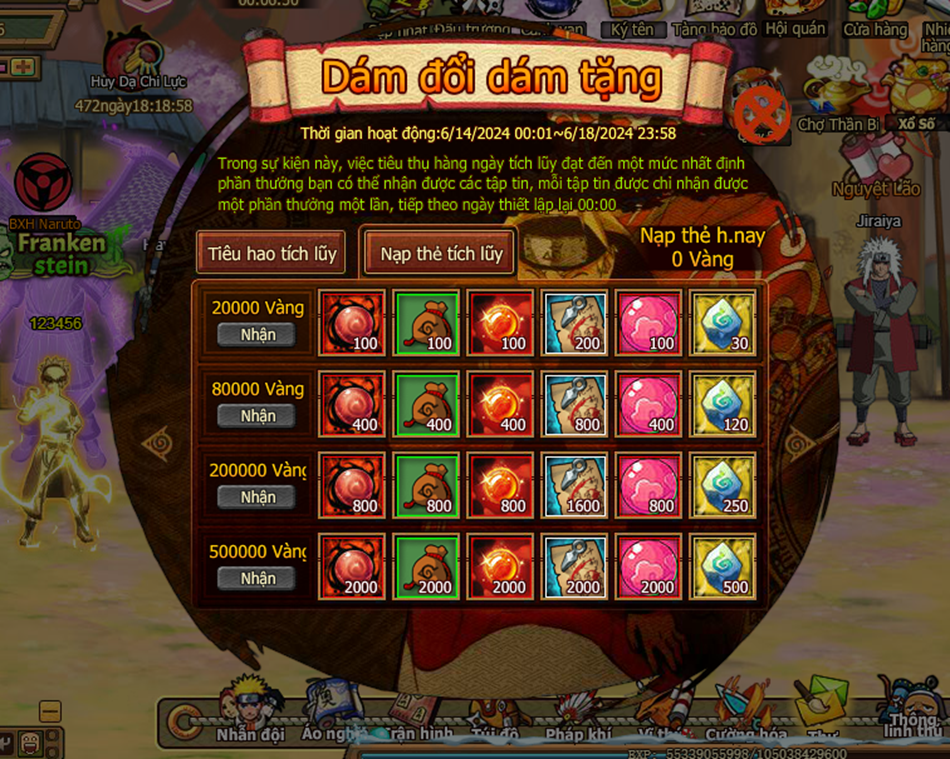 2. Tích lũy nạp thẻ đạt tiêu chuẩn sẽ kích hoạt thưởng miễn phí và quyền mua lễ bao