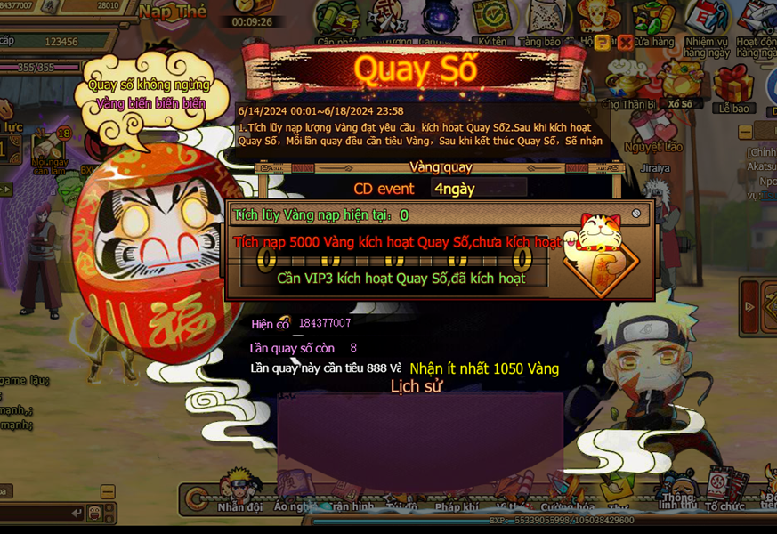 1. Tích lũy nạp lượng vàng đạt yêu cầu kích hoạt Quay Số.