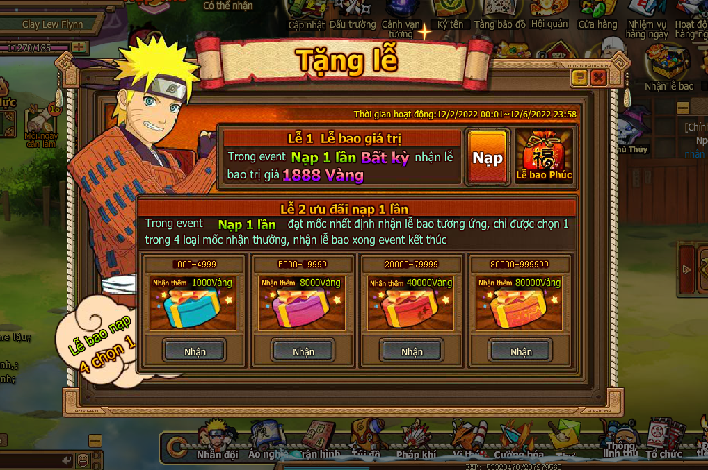 4. Mỗi ninja tăng cấp nhận lễ bao tăng cấp