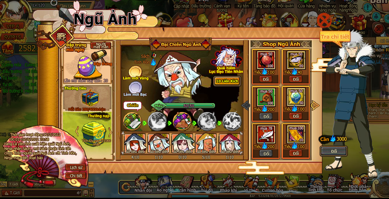 7. ở [Shop Ngũ Ảnh] tiêu [Tinh hồn] đổi các loại đạo cụ, và Ninja mới [Nữ thần nhãn] đợi bạn chiêu mộ.
