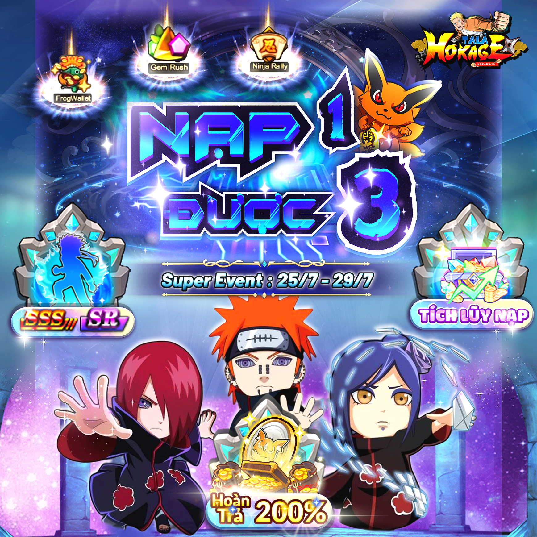 Chào các nhẫn giả sau đây là sự kiện nạp 1 được 3 hoàn trả 200% vàng