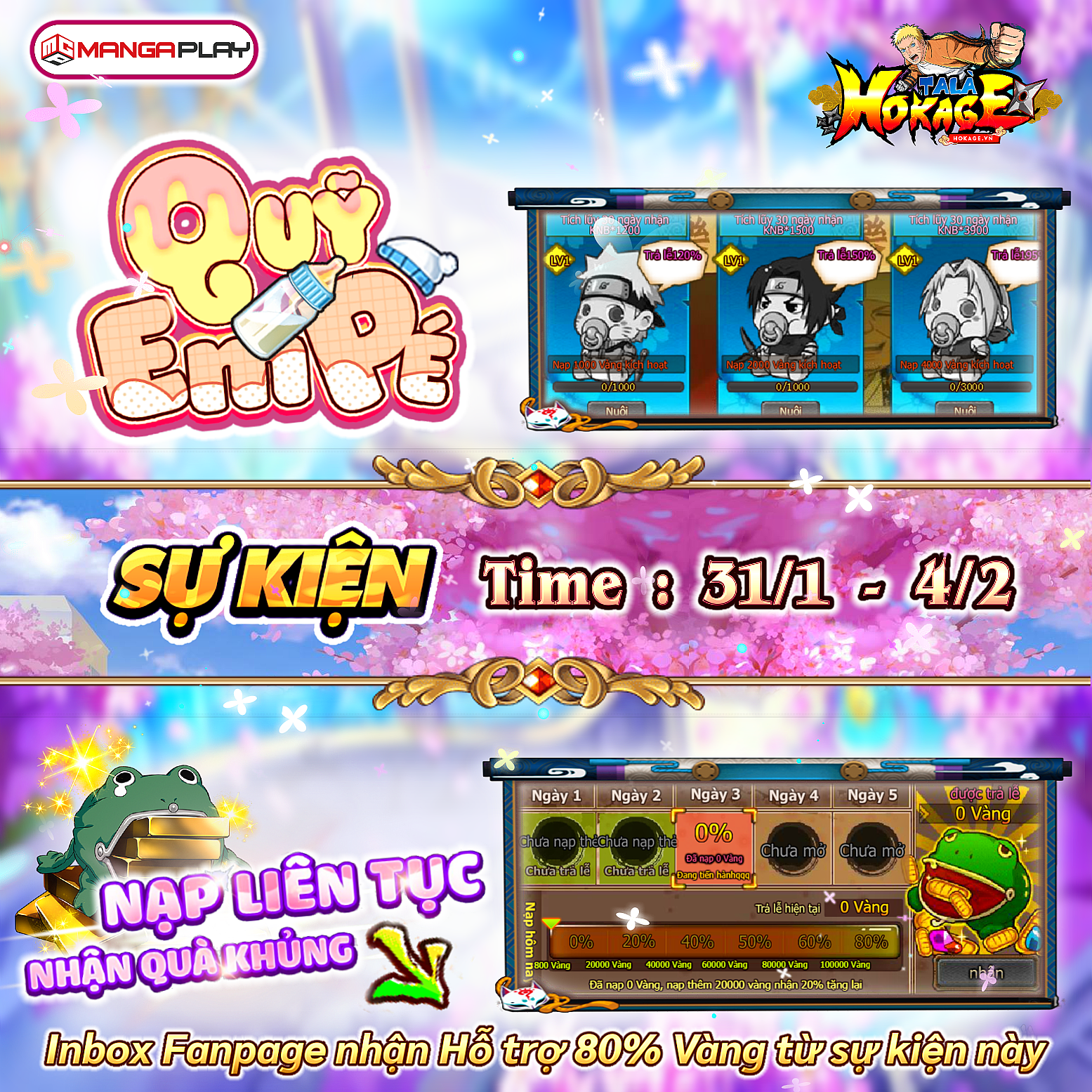 Chào các nhẫn giả của Hokage sau đây cùng xem sự kiện nhé . 25.2 đến 3.1