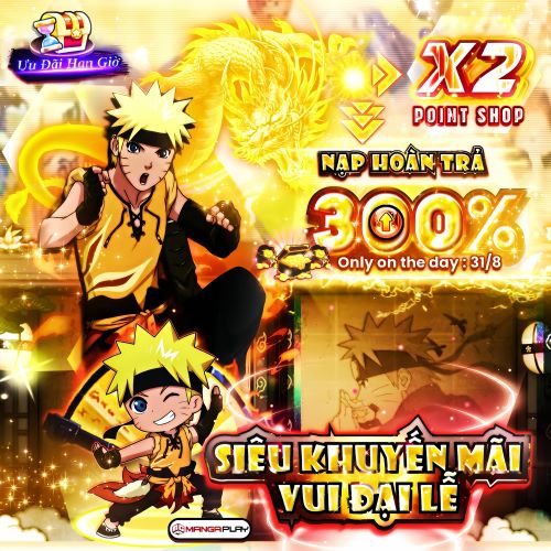 Chào các nhẫn giả sau đây là sự kiện ưu đãi nạp x2 điểm shop & hoàn trả 300%