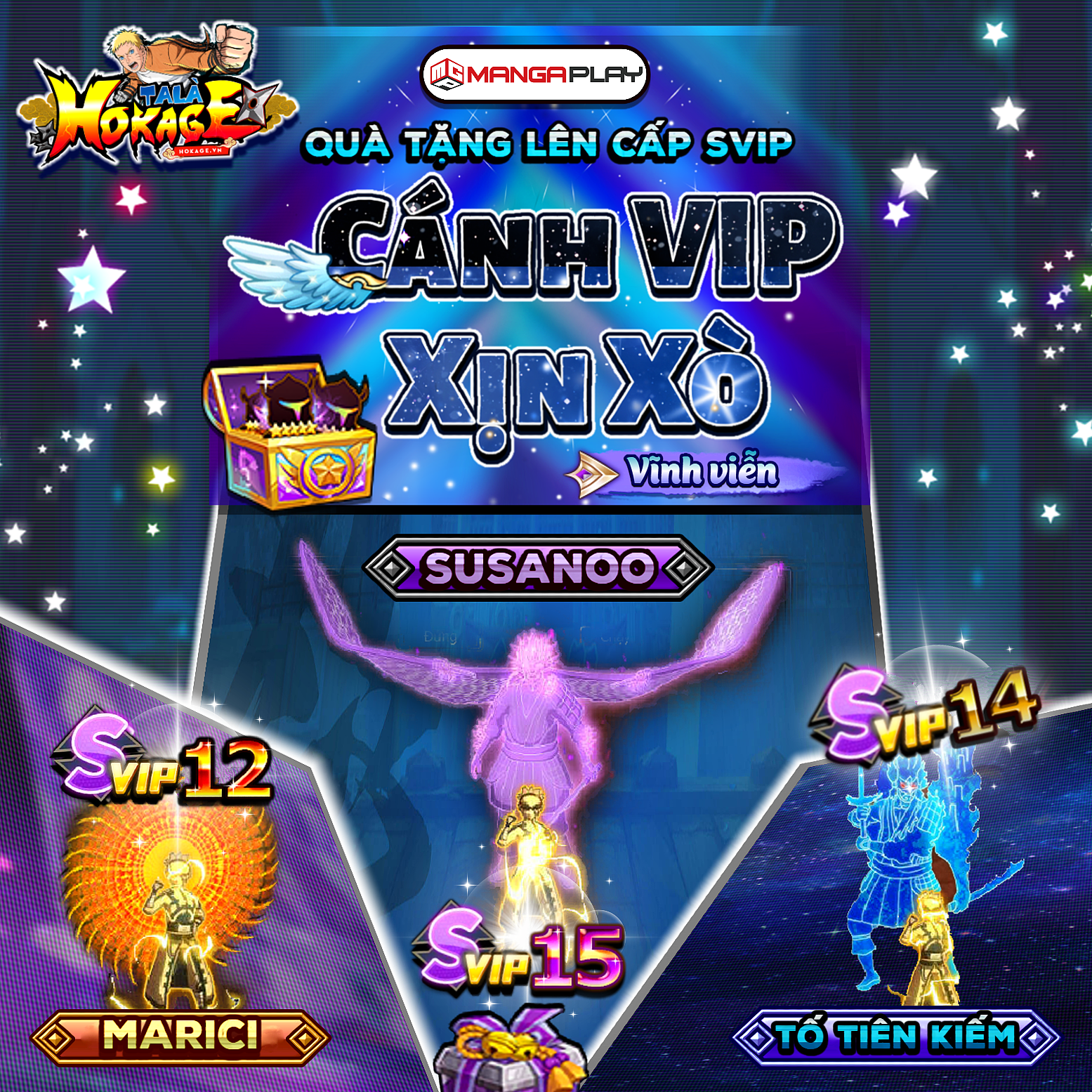 Hokage có ra mắt máy chủ mới Máy chủ S200 - 14/12/2024 với nhiều ưu đãi lớn , đặt biệt là Quà mở máy chủ mới nhận qua thư ( 2h sáng ngày thứ 4 mở máy chủ ) / On the occasion of a new event, Hokage is proud to announce the launch of a new server: Server S200 - 14/12/2024, packed with exciting offers. Notably, you can claim New Server Opening Rewards via mail (available at 2 AM on the 4rd day after the server launches).