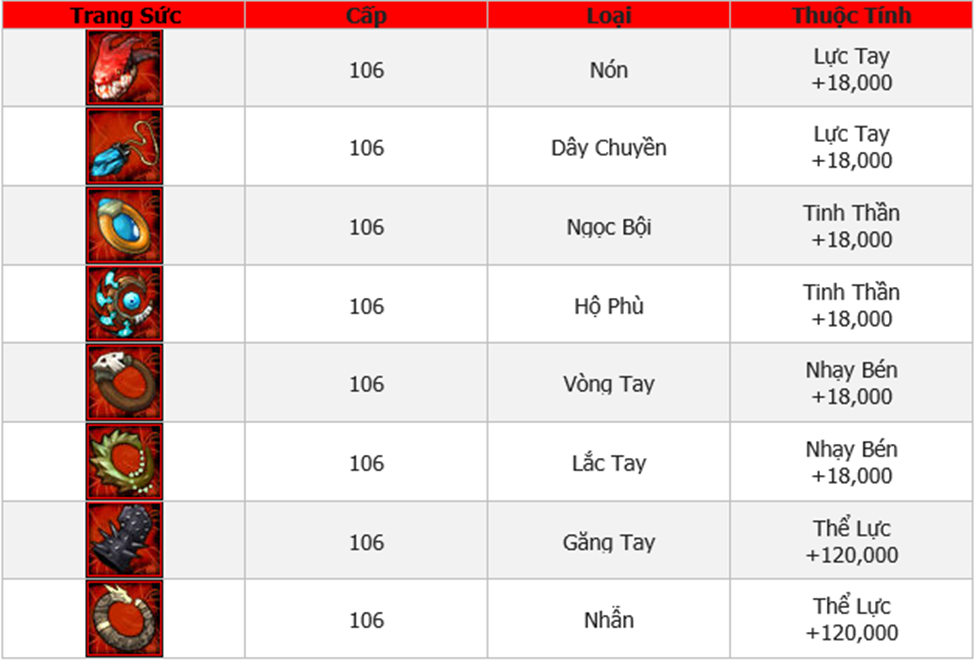 Danh Sách Trang Sức