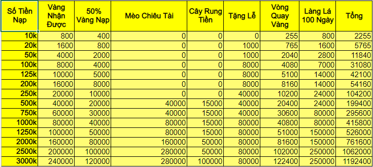 Vàng trả lễ của mỗi mốc mức độ nạp 1 lần đều chỉ tham gia 1 lần