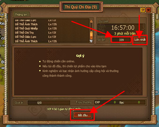 Ô Nút Số Lần : Dùng để nhập số lần muốn càn quét ải, số lần sẽ bị giới hạn bởi điểm hoạt lực
