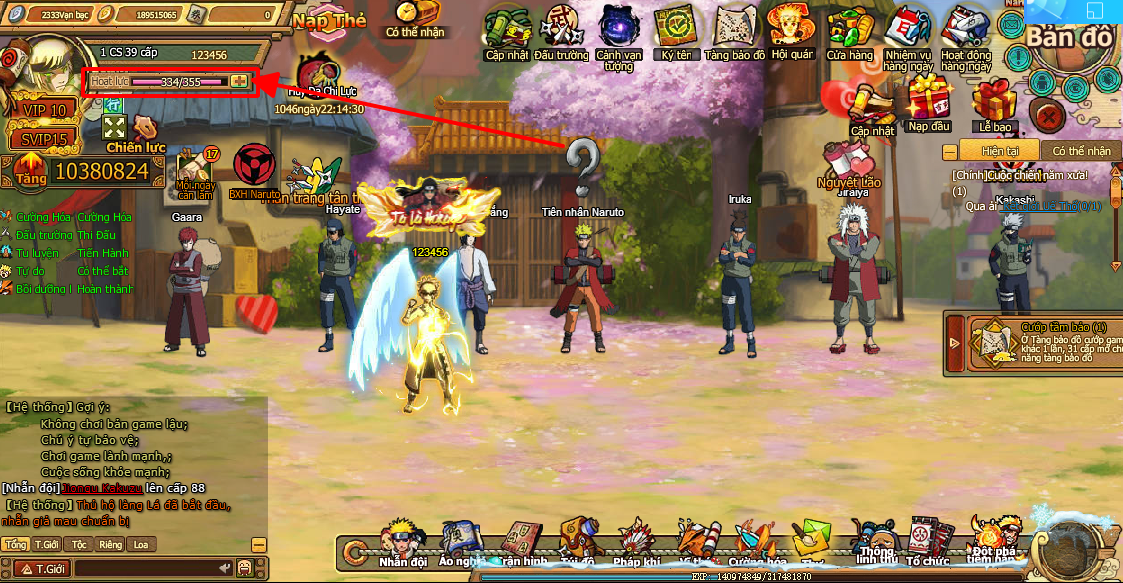 Để mua trực tiếp điểm hoạt lực, quý ninja có thể bấm vào hình ảnh nút dấu "+" ngay tại thanh điểm hoạt lực như hình ảnh sau đây :