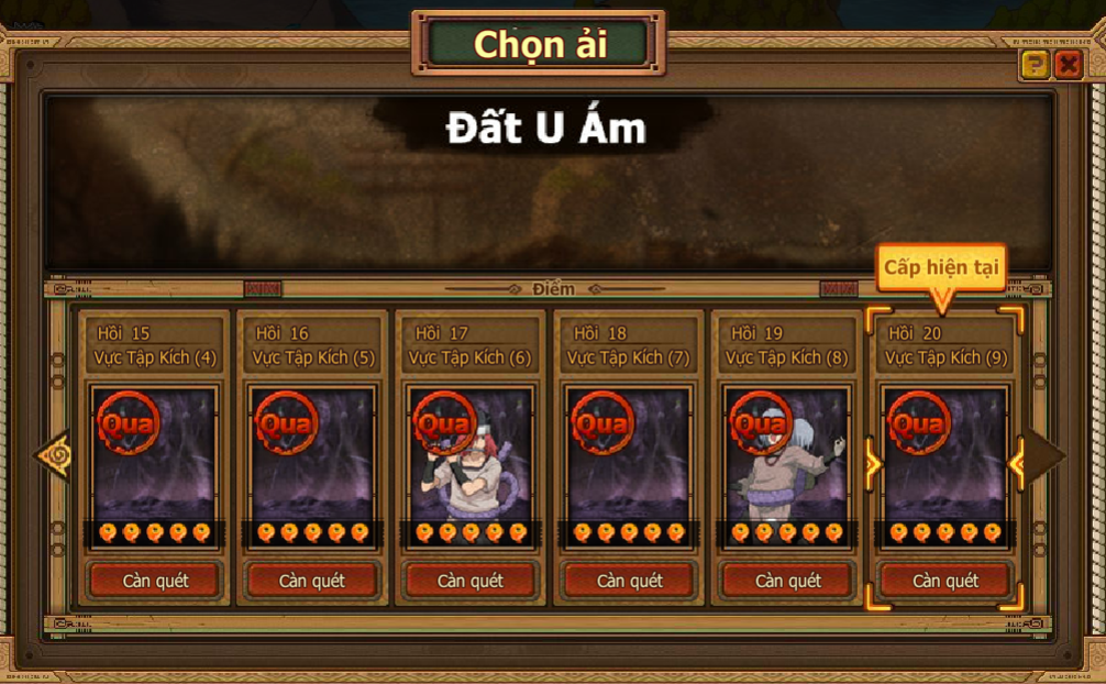 Nên tích lực hoạt động để đến ải cấp cao nhất rồi quét 1 lần è nhận được nhiều kinh nghiệm + bạc hơn.