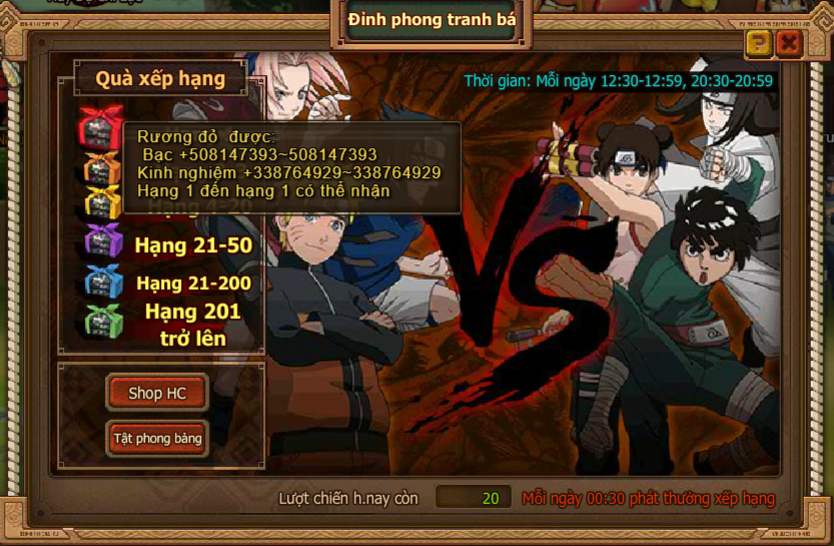 Nếu nạp nhiều, có nhiều vàng thì có thể kích thêm liên kết Ninja đại chiến è tăng rất nhiều lực chiến.