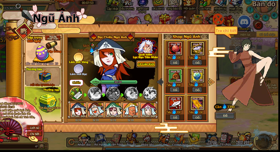 7. ở [Shop Ngũ Ảnh] tiêu [Tinh hồn] đổi các loại đạo cụ, và Ninja mới [Kurotsuchi] đợi bạn chiêu mộ.