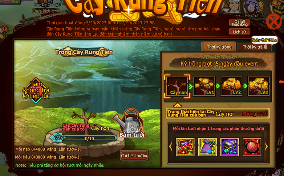 + Từ ngày 20.7 đến 24.7 nạp đạt các mốc tương ứng sẽ nhận phần thưởng