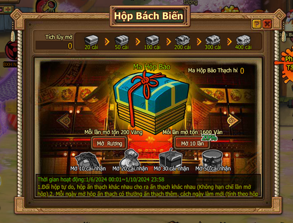 3. Mở các loại hộp tổng tích lũy nhận hộp thưởng tích lũy Bách biến ma hộp.