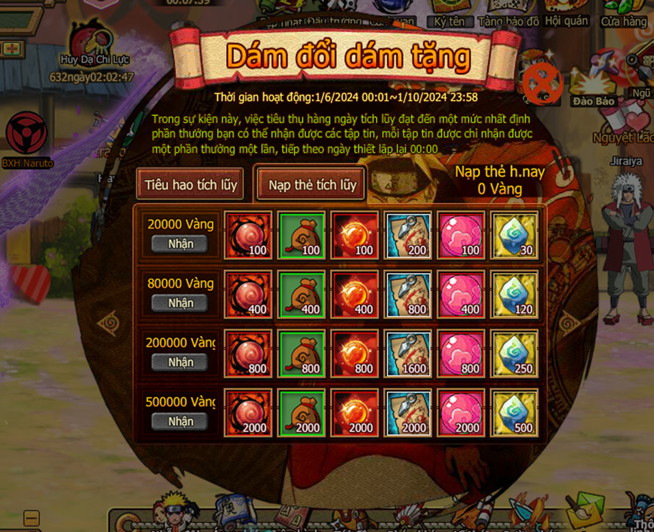 2. Tích lũy nạp thẻ đạt tiêu chuẩn sẽ kích hoạt thưởng miễn phí và quyền mua lễ bao