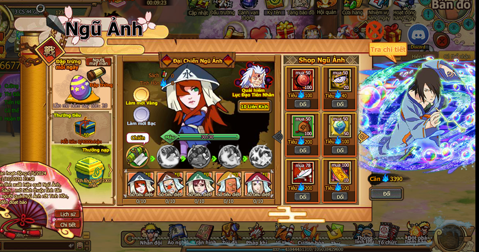 7. ở [Shop Ngũ Ảnh] tiêu [Tinh hồn] đổi các loại đạo cụ, và Ninja mới [Utakata] đợi bạn chiêu mộ.
