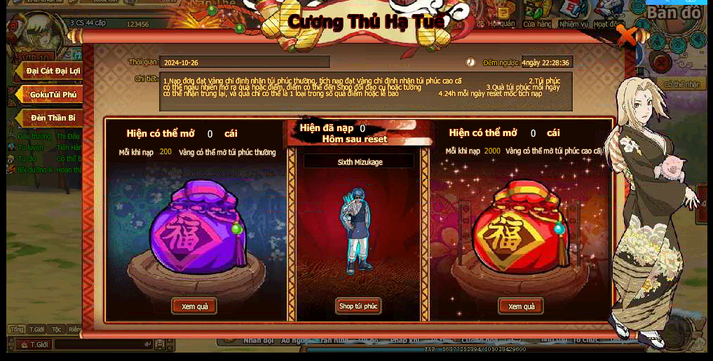 3. Quà túi phúc mỗi ngày có thể nhận trùng lại, và quà chỉ có thể là 1 loại trong số quà điểm hoặc lễ bao.