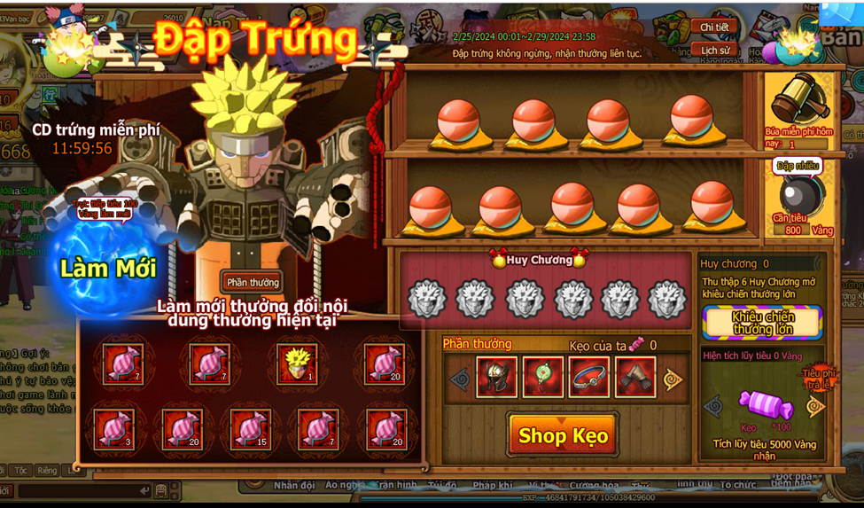 7. Trong quá trình đập trứng nhận Huy Chương , tập hợp đủ 6 Huy Chương mở kiêu chiến thưởng lớn , ở kiêu chiến thưởng lớn nhận lượng lớn kẹo