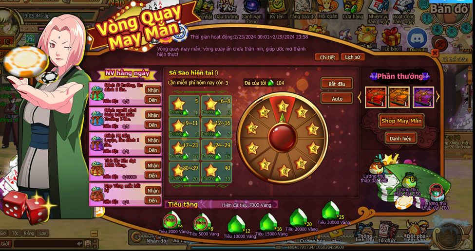 1.Trong thời gian hoạt động hoan thành nv hằng ngày nhận sao may mắn