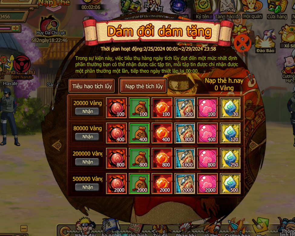 2. Tích lũy nạp thẻ đạt tiêu chuẩn sẽ kích hoạt thưởng miễn phí và quyền mua lễ bao