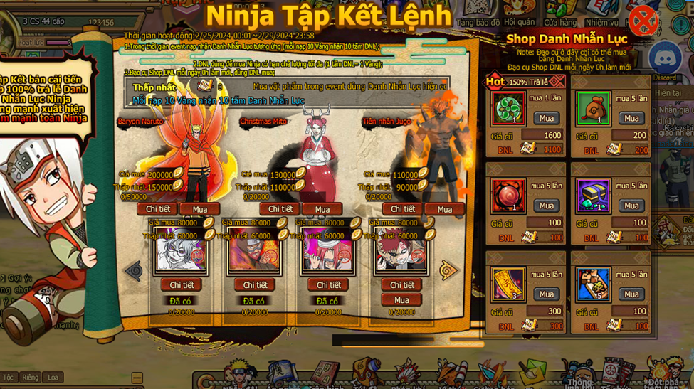 2.DNL dùng để mua ninja có hạn chế lượng tối đa ( 1 tấm DNL bằng 1 vàng )