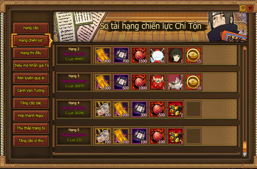 - Cùng Ad xem quà khi các nhẫn giả dành top lực chiến nhé