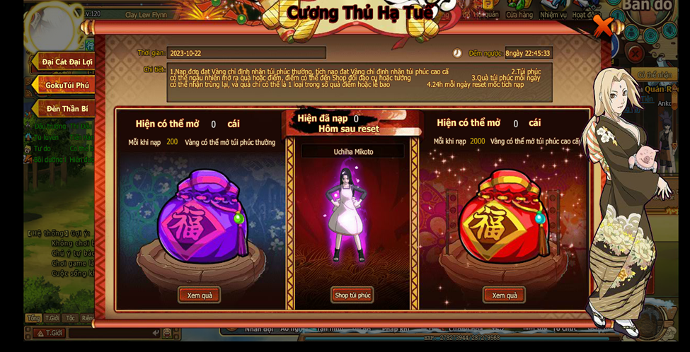 3. Quà túi phúc mỗi ngày có thể nhận trùng lại, và quà chỉ có thể là 1 loại trong số quà điểm hoặc lễ bao.