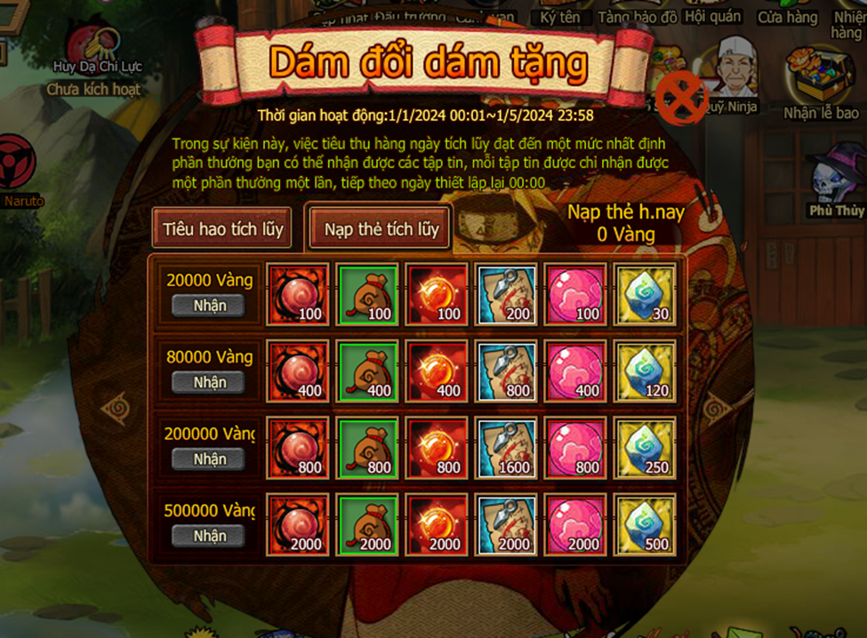 3. Ninja cuôi cấp càng cao , vàng trả lễ càng nhiều