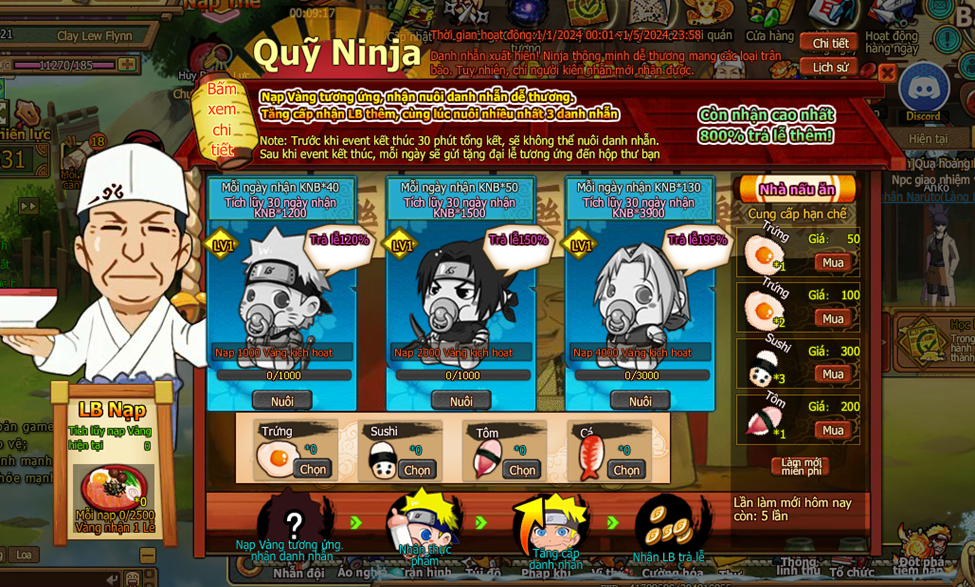 2. Tổng có 3 loại quỹ vàng ,mỗi loại trả lễ khác nhau , có thể nuôi 3 ninja