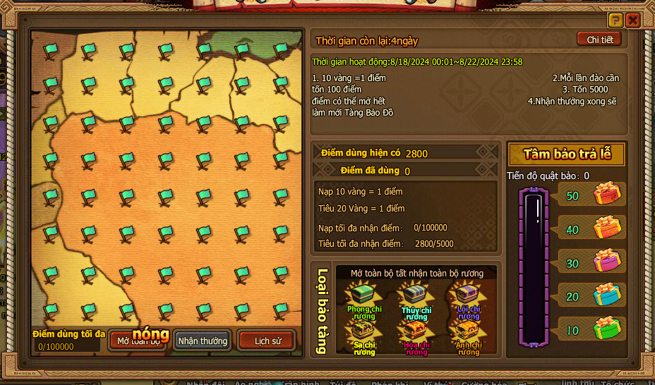 5. Nhận thưởng sẽ làm mới Tàng Bảo Đồ.
