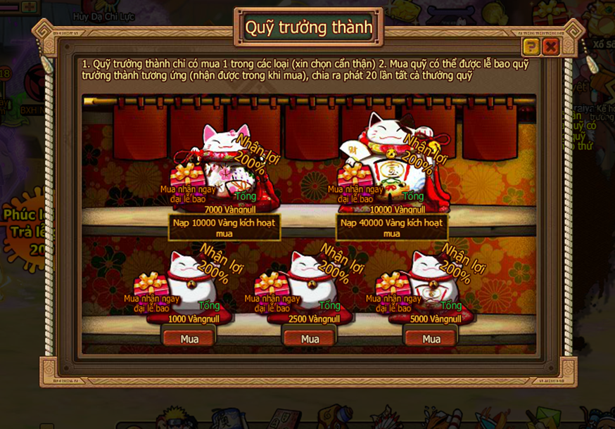 Mua lễ bao chỉ có thể tốn vàng , lễ bao có cấp mở hạn chế