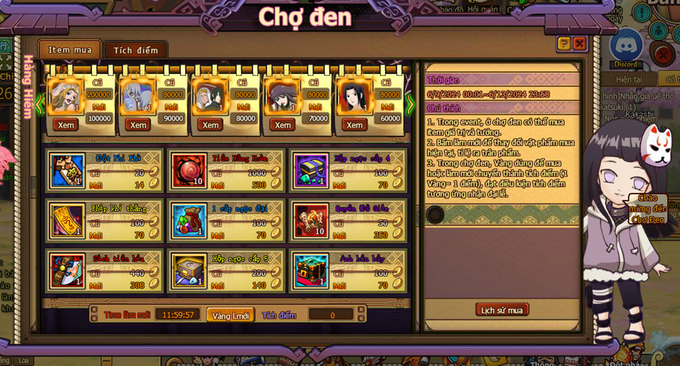 1. Trong event , ở chợ đen có thể mua item giá trị và tướng